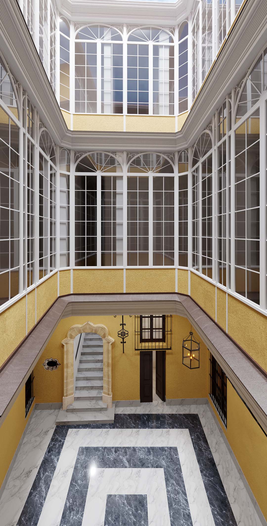 Larga48 no es solo una promoción inmobiliaria; es una rehabilitación respetuosa de una vivienda histórica del siglo XIX. El edificio original ha sido meticulosamente restaurado para preservar su esencia andaluza, incluyendo suelos hidráulicos, viguería de madera en techos y elegantes galerías de palillería.